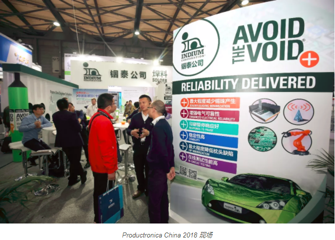 此次展會(huì)上,銦泰公司展出了眾多包括超低空洞系列(Avoid the Void?)焊錫膏產(chǎn)品、InFORMS?焊片、半導(dǎo)體助焊劑等在內(nèi)的一系列創(chuàng)新產(chǎn)品,并通過這一行業(yè)盛會(huì)向廣大與會(huì)者分享了其在表面貼裝、半導(dǎo)體制造、汽車電子、功率模塊制造等領(lǐng)域的成功應(yīng)用與行業(yè)見解。